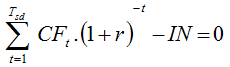 ... kde IRR = vnitřní výnosové procento Tž = doba životnosti, CFt = roční úspora nákladů (nebo roční příjem) v roce t r = diskontní míra IN = investiční výdaj |